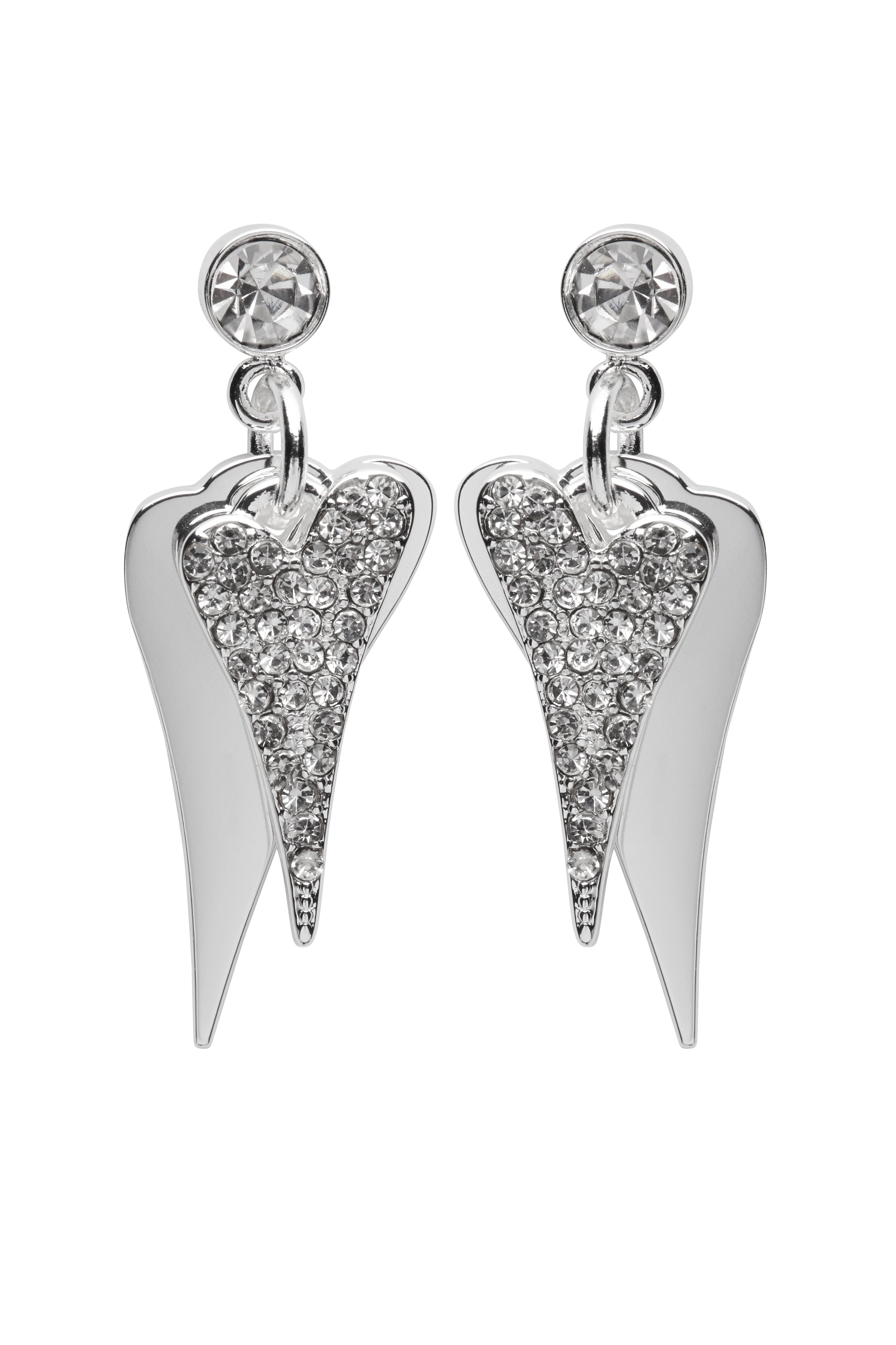 Miss Dee Double Heart Crystal Earrings in Silver