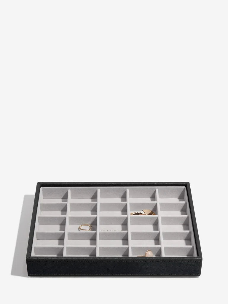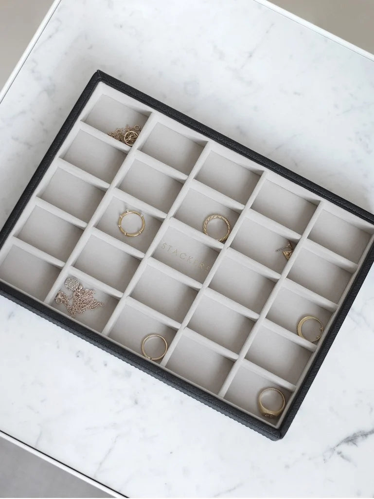 The classic, small trinkets layer is perfect for all your earrings, rings and charms. With 25 individual sections, it's the ideal way to keep those small jewellery pieces organised.