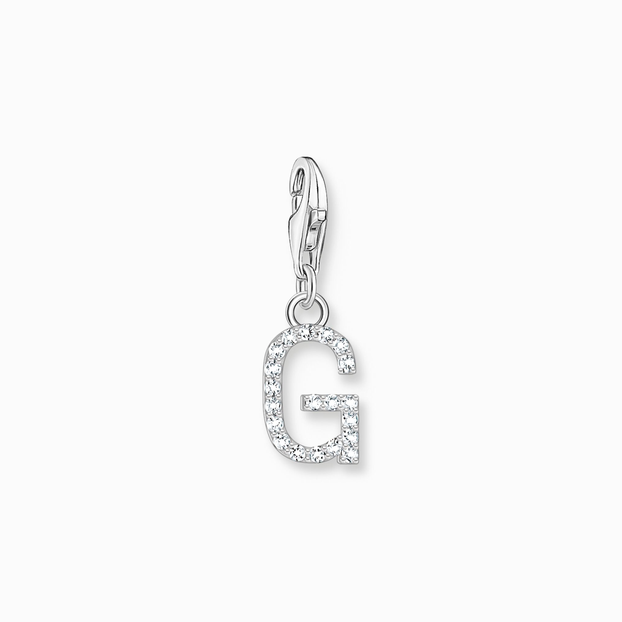 Add a playful touch to your jewellery collection with the Thomas Sabo G Initial Charm Pendant! Made of 925 Sterling silver, the sparkling letter is accented with hand-set white zirconia stones. Its unique pavé setting creates a beautiful play of colors in the light. With a lobster clasp, it can be easily added to any Charm Club necklace or bracelet for a personal touch.