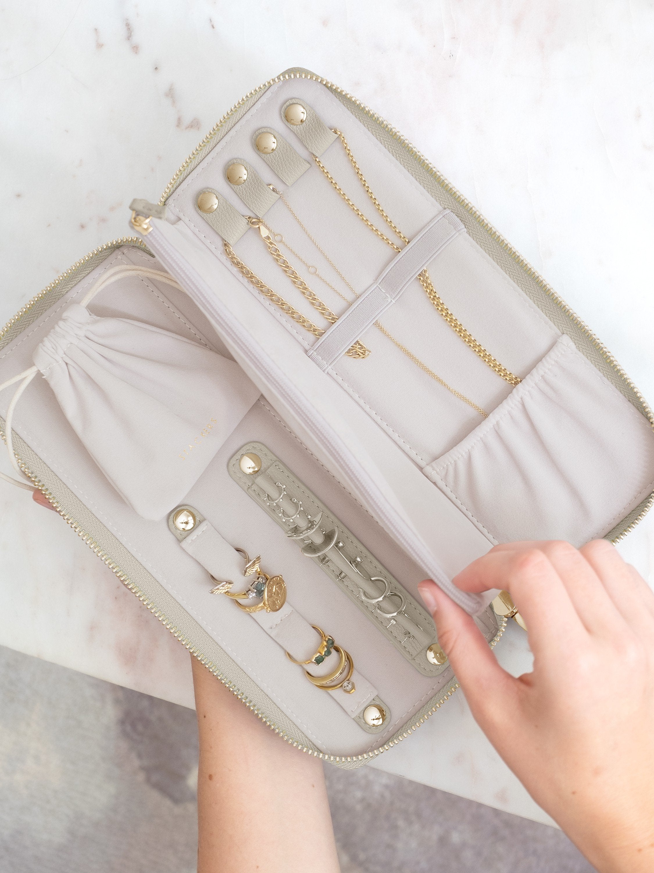 This slim zipped Jewellery Purse has plenty of room to keep all your favourites with you and will easily fit inside your handbag or luggage.