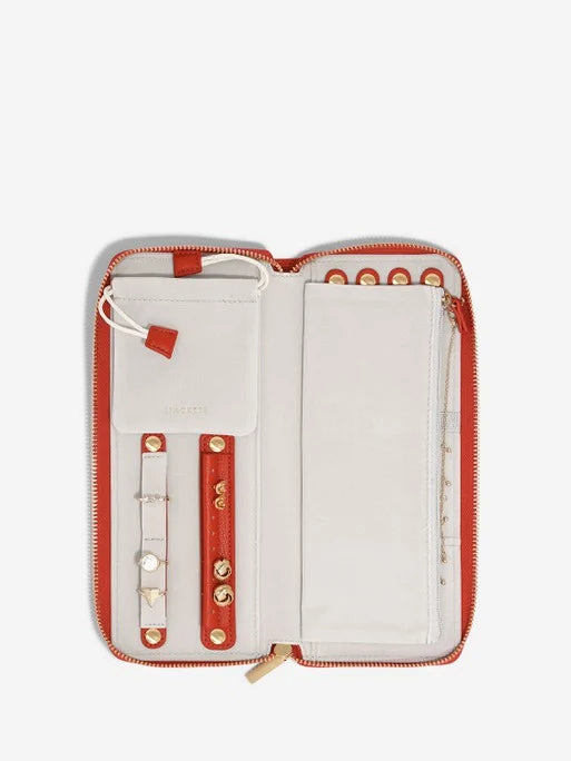 Stay organised in style with the Stackers Travel Jewellery Roll. This compact roll has space for up to 4 necklaces or bracelets, as well as an earring holder, ring holder, and a velvet pouch for any loose items. Plus, with a built-in zipped pocket for additional storage, it's the perfect travel companion. Keep all your favourites at hand, whether at home or on-the-go!
