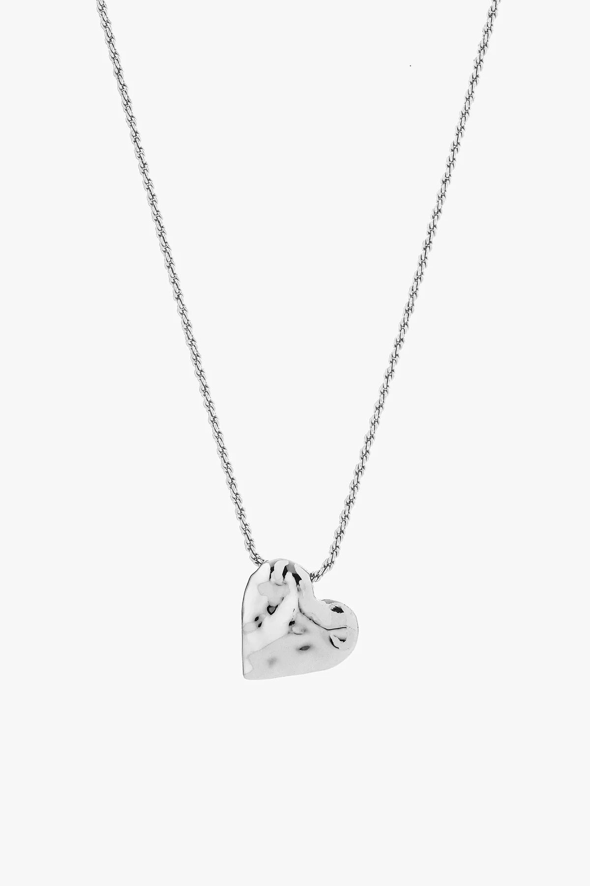 Complete your look with the Tutti & Co. Heart Necklace in Silver. Handcrafted from sustainable materials, this necklace features a large scrunch texture heart pendant for a unique and playful touch. Add other matching pieces from the Scrunch Hearts Collection for a complete stylish set. Comes with a 12 month warranty and packaged in a recycled fabric pouch.
