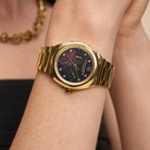 Embrace Sports Luxe with Olivia Burton's 36mm Lustre Multifunction Watch. The curved case cradles a black Mother of Pearl dial adorned with crystal markers, while a unique honeycomb-inspired bracelet adds a playful touch to the elegant gold finish. Time to turn heads (and wrists)!