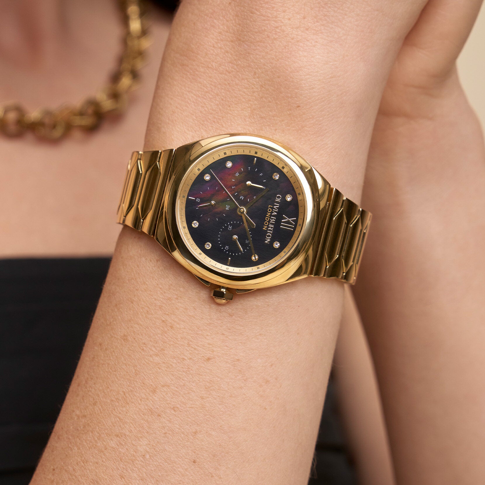 Olivia Burton 36mm Lustre Multifunction Black & Gold Bracelet Watch
