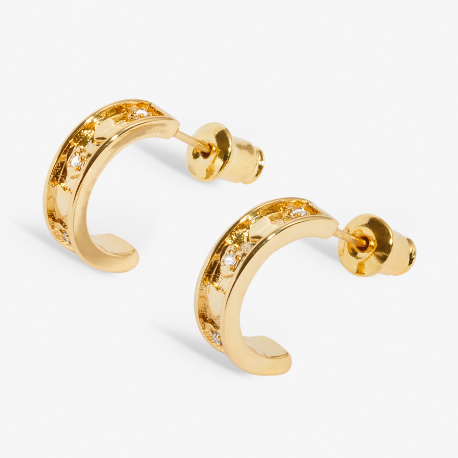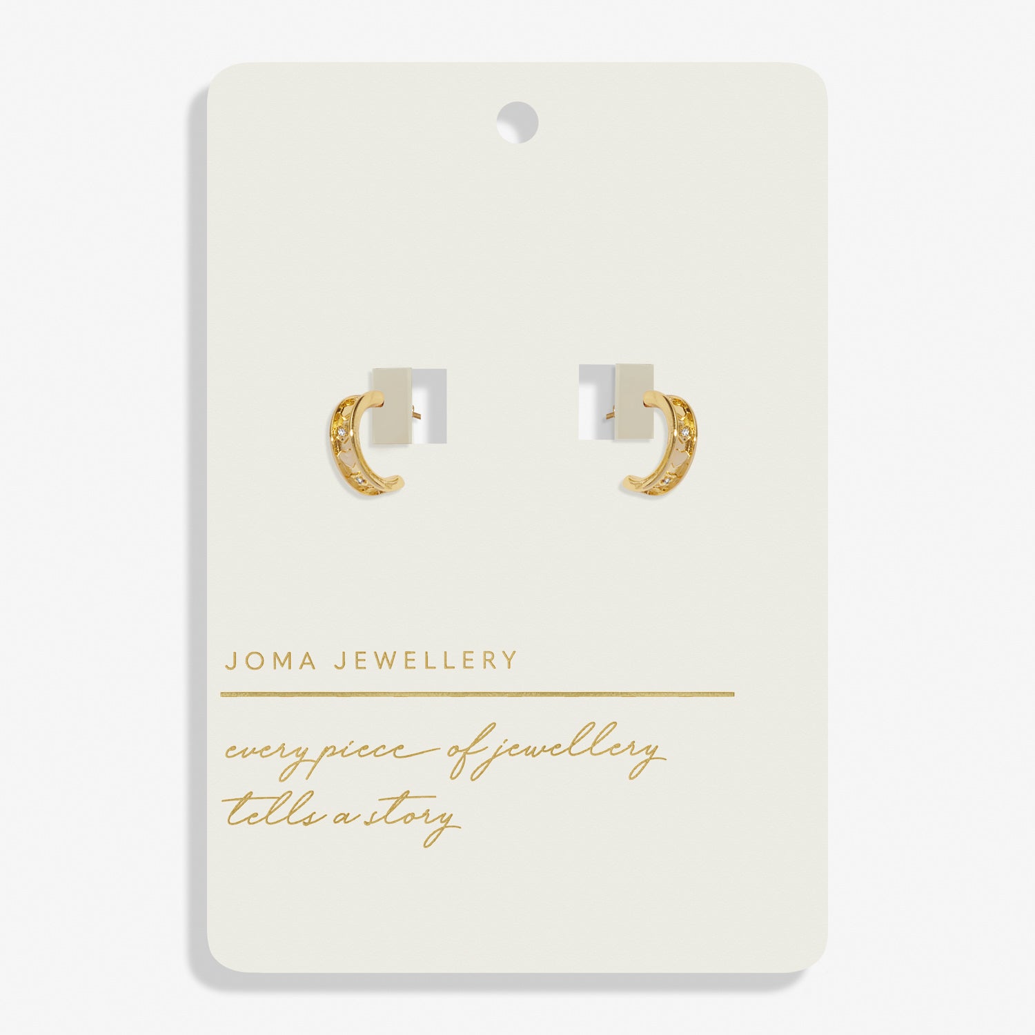 Add a touch of glamour with these Joma Jewellery Barrel Hoops in Gold. The Gold-Plated finish gives a luxurious and elegant look, while being presented on a gold-foiled textured buttercream card adds a unique touch. Perfect for any occasion or as a thoughtful gift. Shine bright with style!