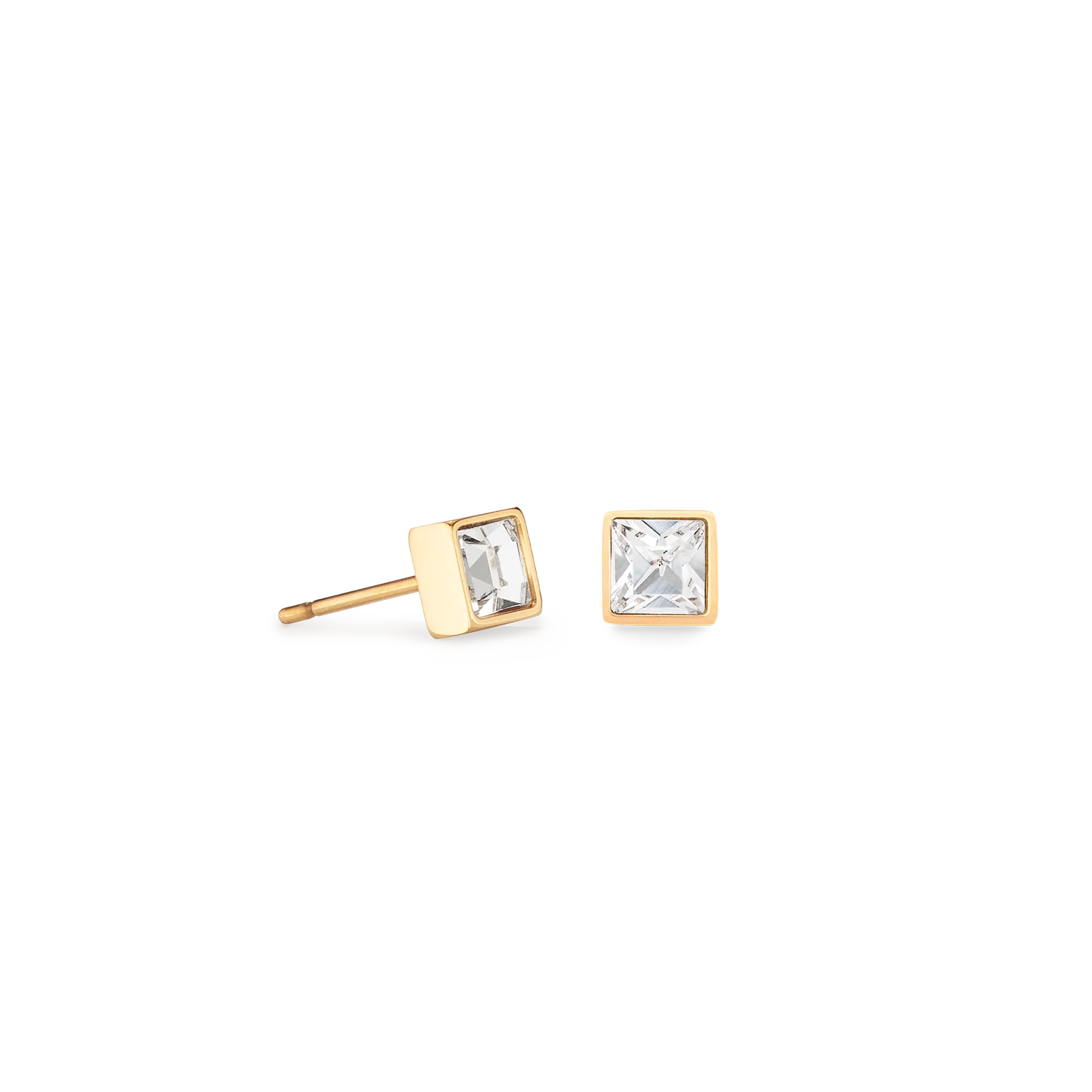 Cœur De Lion Crystal Brilliant Square Stud Earrings in Gold